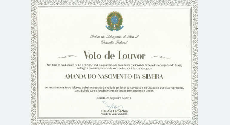 Voto de Louvor (2019) concedido pelo Conselho Federal da OAB/RS.